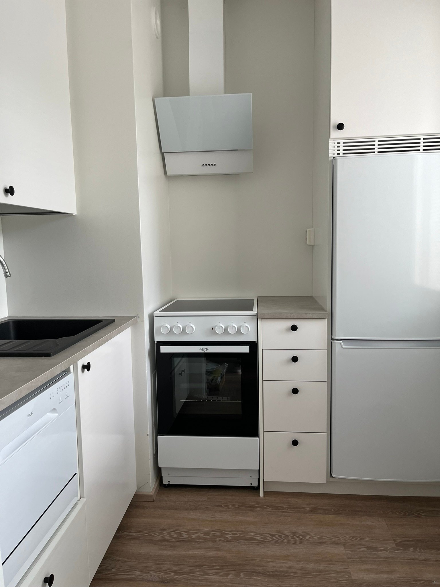 Jääkaappipakastin, liesi, uuni, liesituuletin ja astianpesukone
