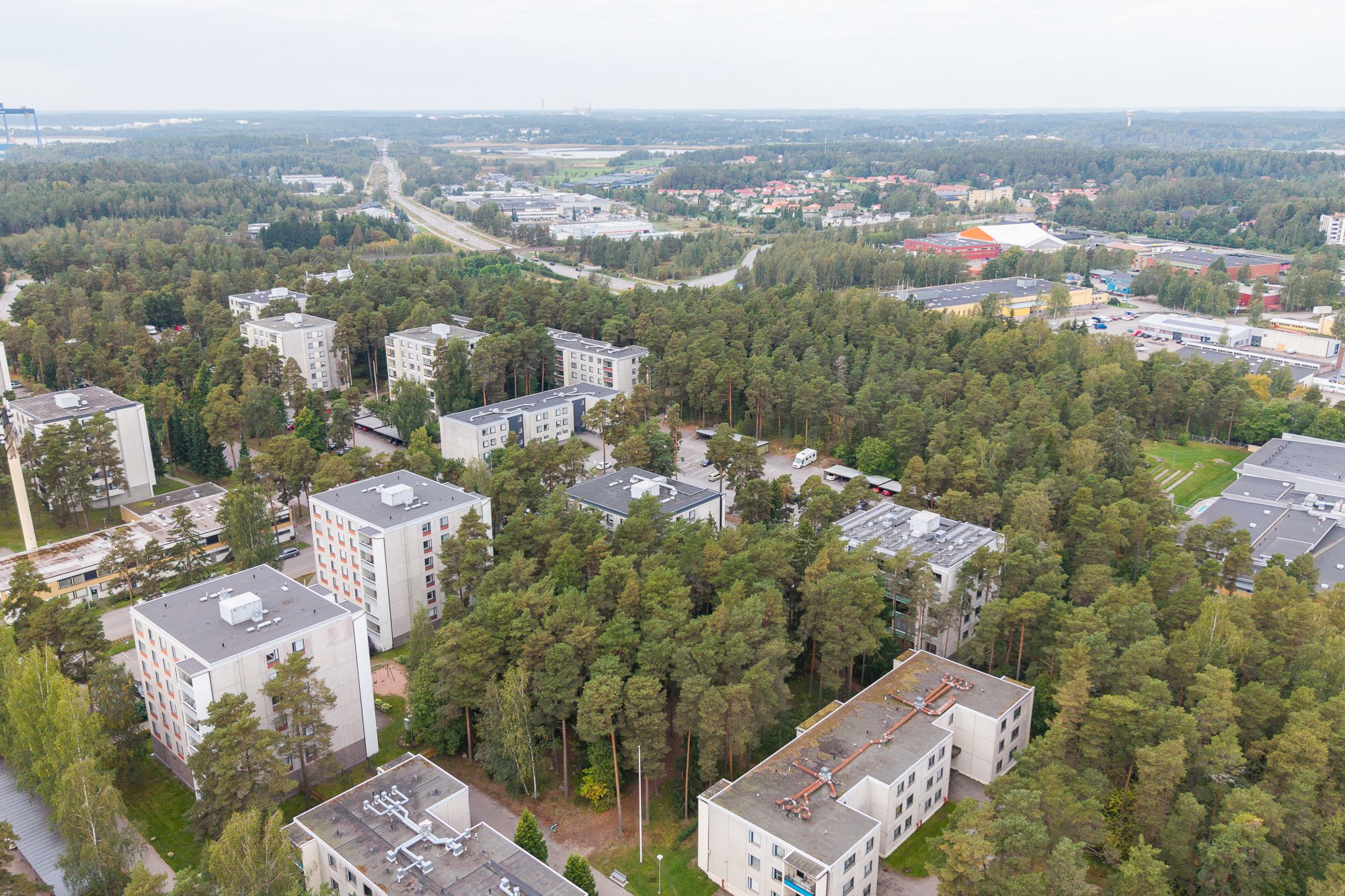 Uima- ja jalkapallohalli sekä kirjasto lähellä, Raision keskustan palvelut lähistöllä.