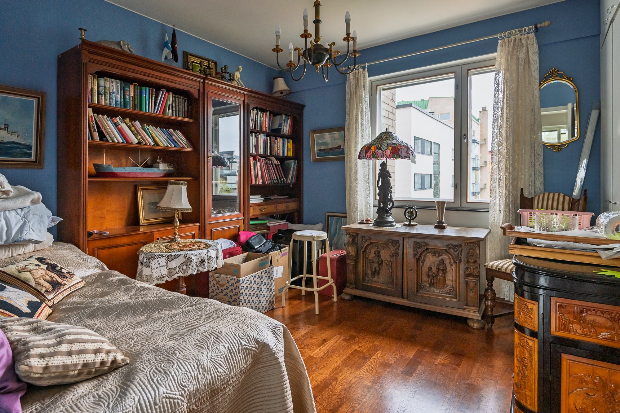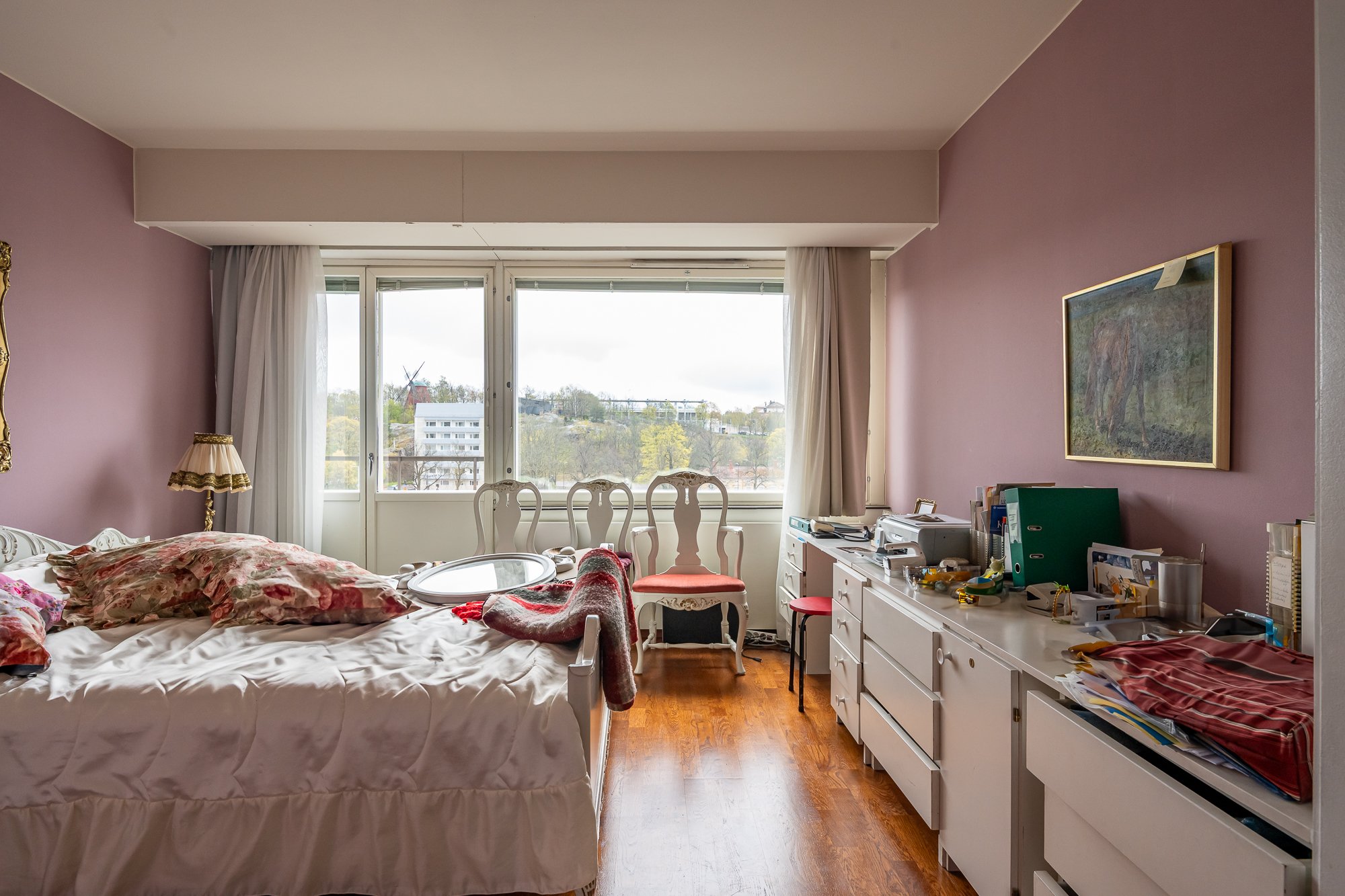 2 tilavaa makuuhuonetta, näkymät yhdessä makuuhuoneessa rauhalliselle sisäpihalle ja toisessa Aurajokirantaan. Aurajokirannan puoleisessa makuuhuoneessa ranskalainen parveke.