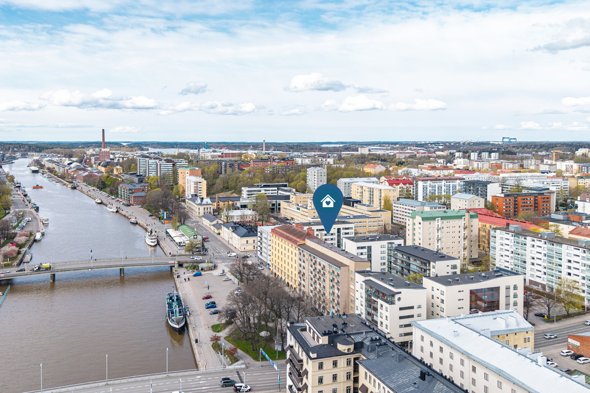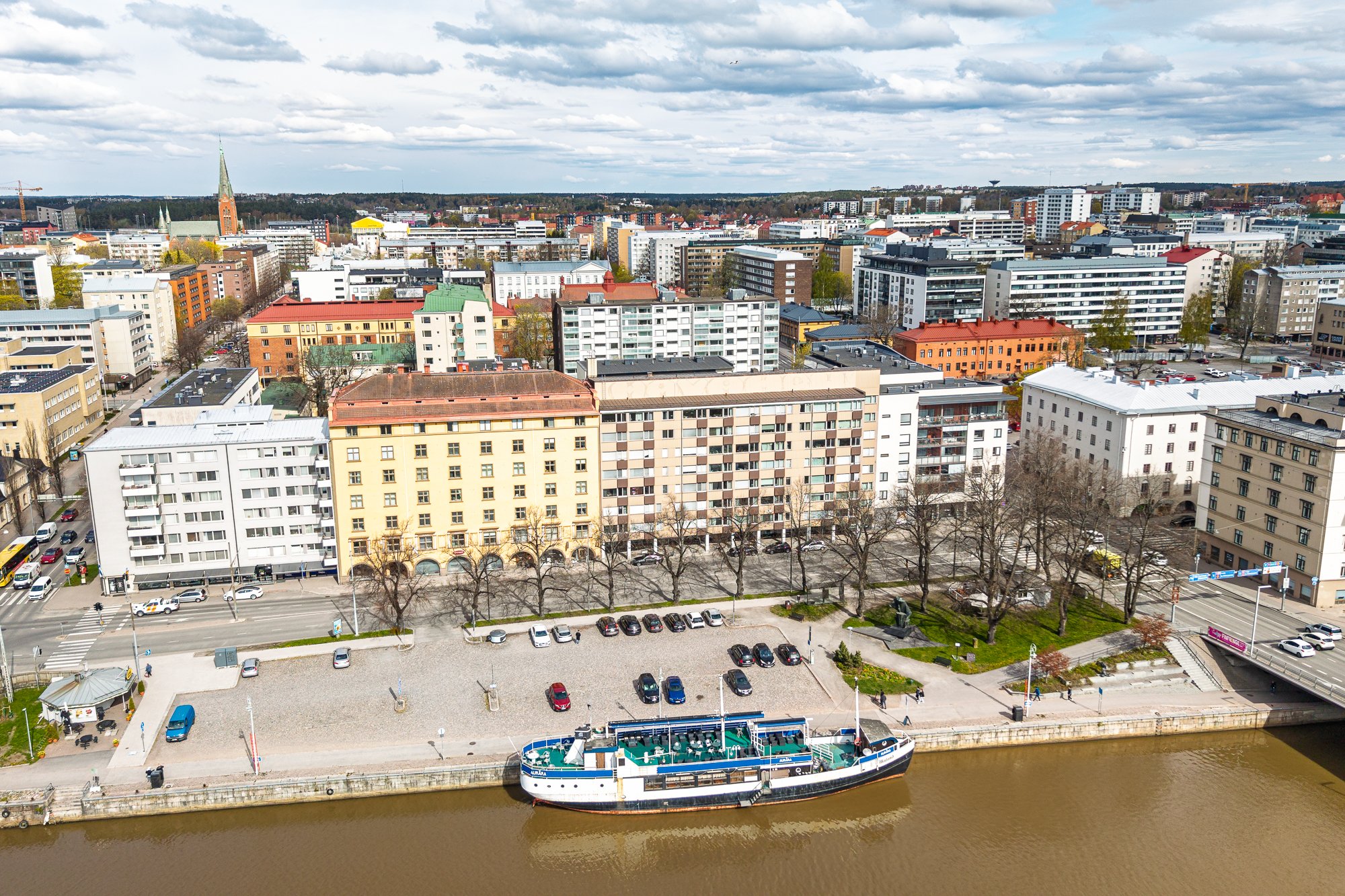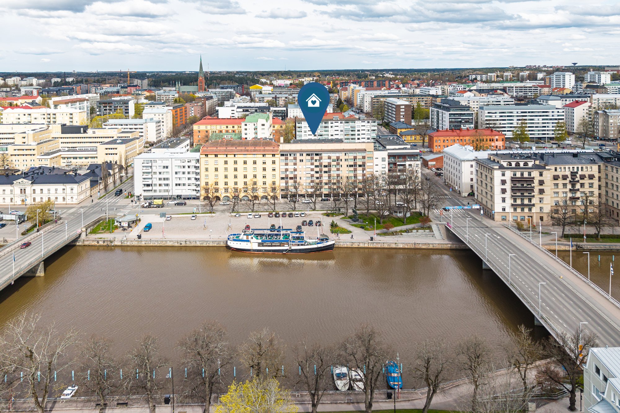 Täällä tilava ja valoisa 80 m²:n läpitalon kahden makuuhuoneen koti tarjoaa viihtyisää asumista erinomaisella sijainnilla Aurajokirannassa. Hissillisen, vuonna 1961 rakennetun talon kuudennesta kerroksesta avautuvat upeat näkymät Aurajoelle ja kaupungin kattojen ylle.