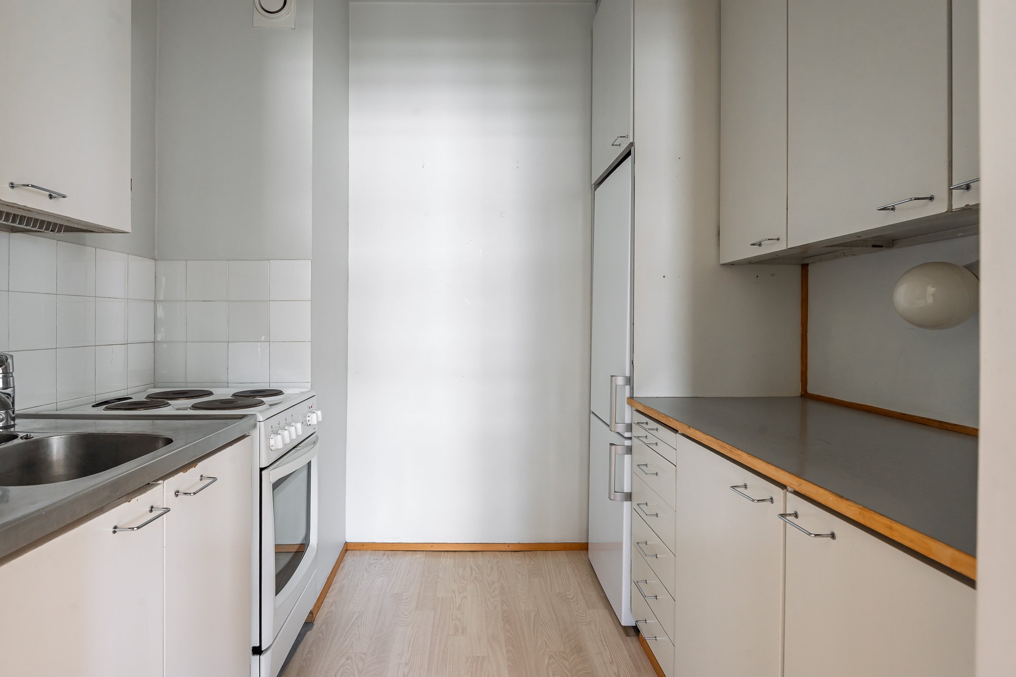 Huoneisto sijaitsee hissillisen talon seitsemännessä kerroksessa.