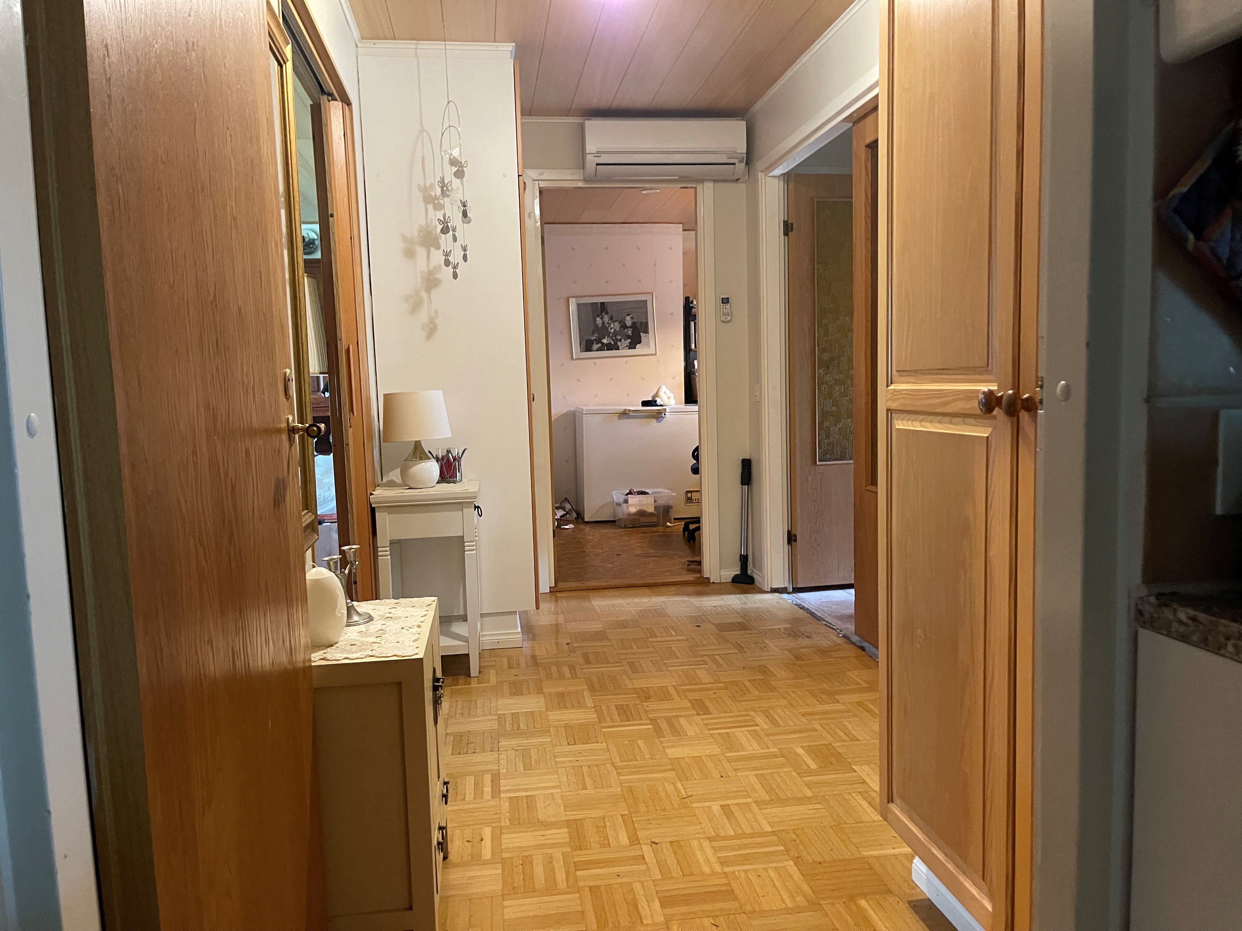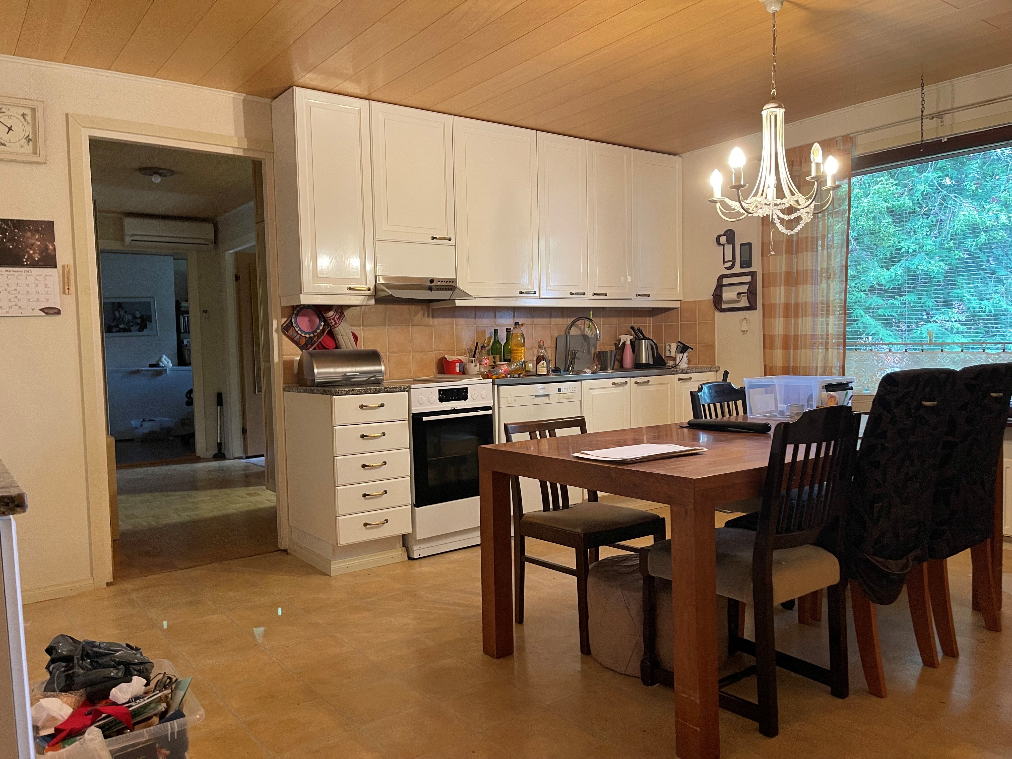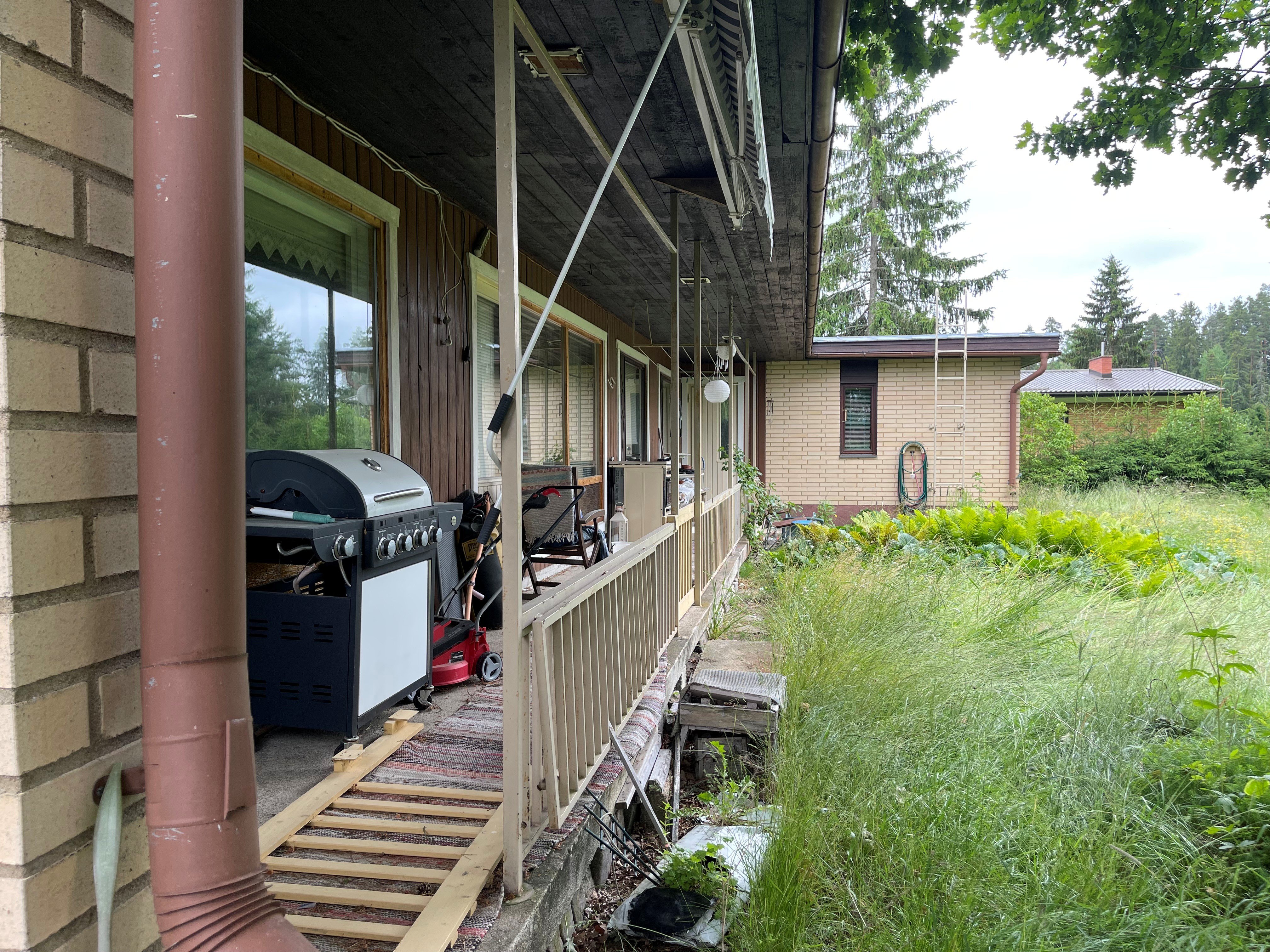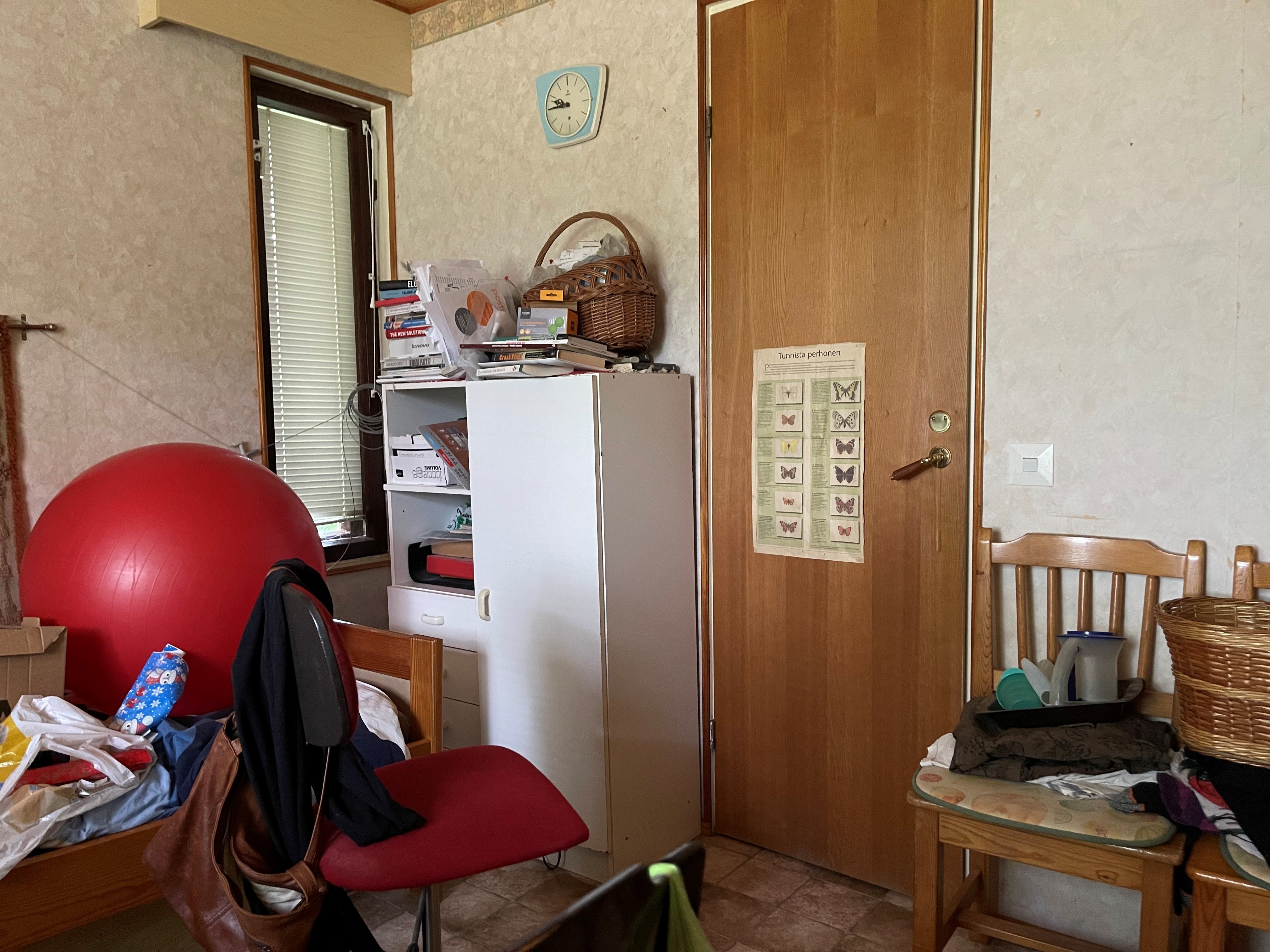Talossa on noin 131m2 yhdessä tasossa. Makuuhuoneita on kolme kappaletta ja kodinhoitohuone sekä kylpyhuone ja sauna. Myös varastotilaa löytyy mukavasti. Kyseessä on paritalo, jonka toisessa osassa on pienehkö huone sekä keittiö ja wc. Tätä tilaa on pidetty lähinnä varastokäytössä. Asuinosan kylpyhuone sekä kodinhoitotila ovat aikanaan remontoituja. Muita remontteja kiinteistössä ei ole juurikaan tehty ja talon saneeraus sekä sisältä että ulkopuolelta on edessä.