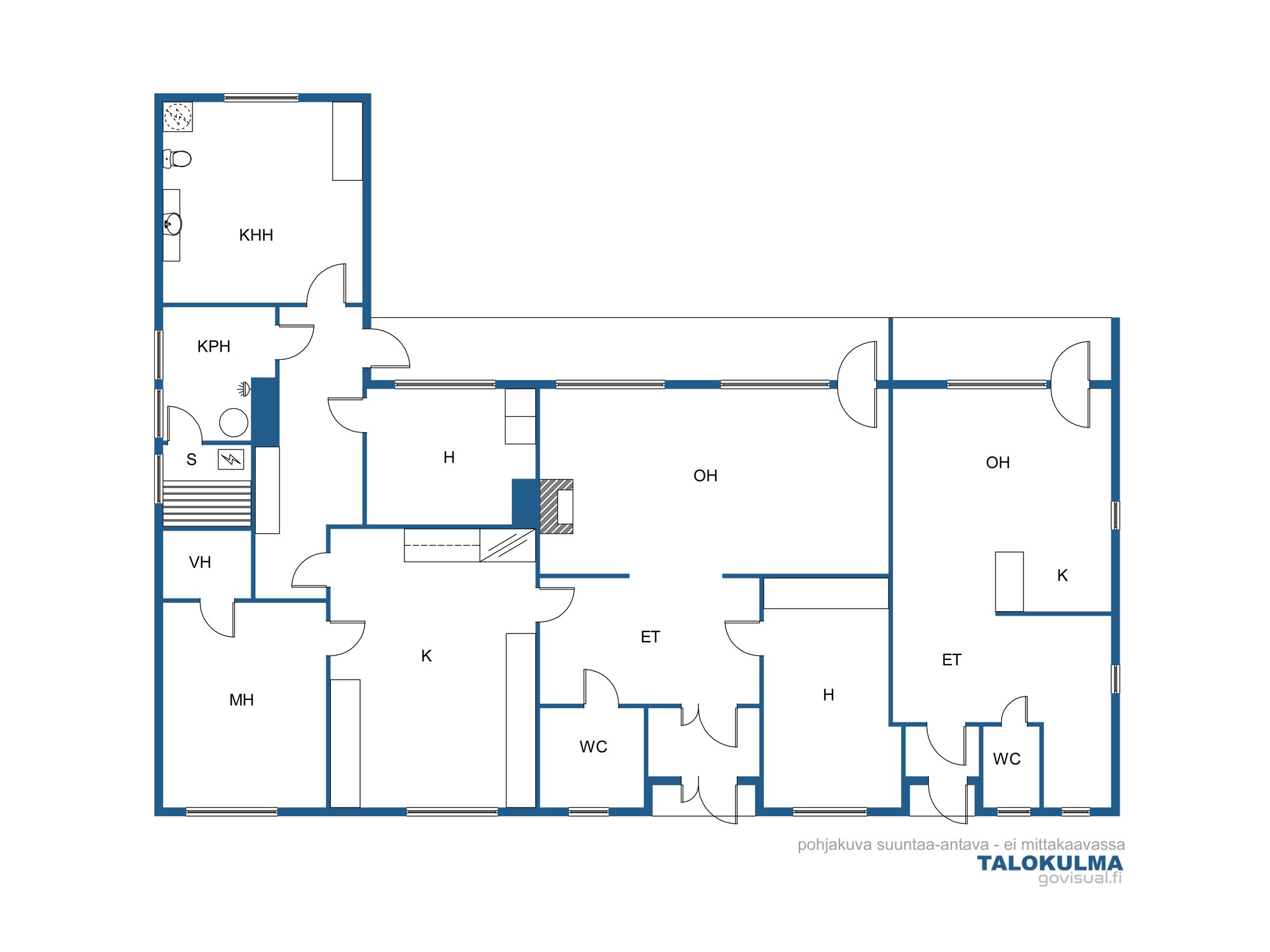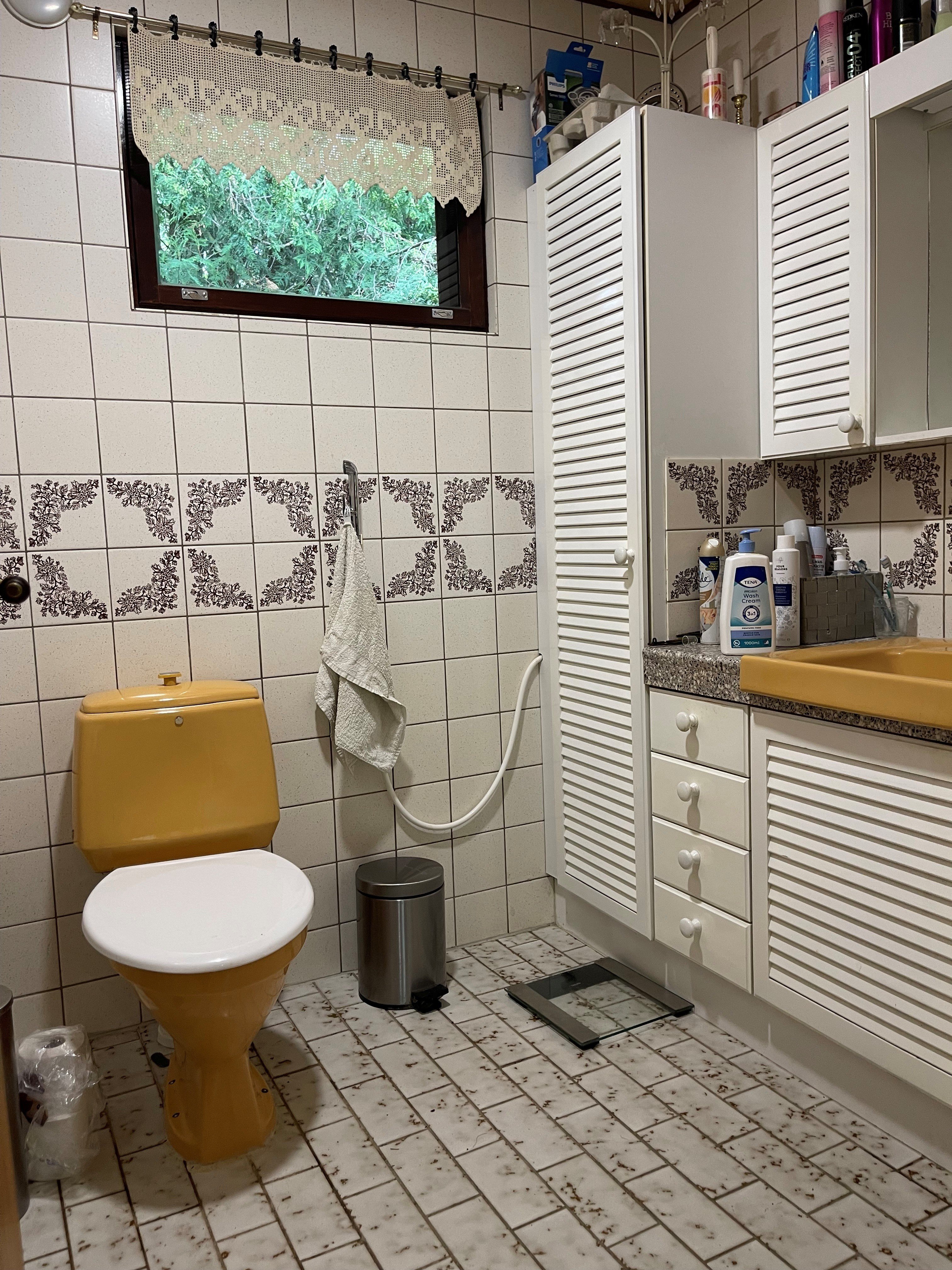 Talossa erillinen wc. Myös kodinhoitohuoneessa wc.