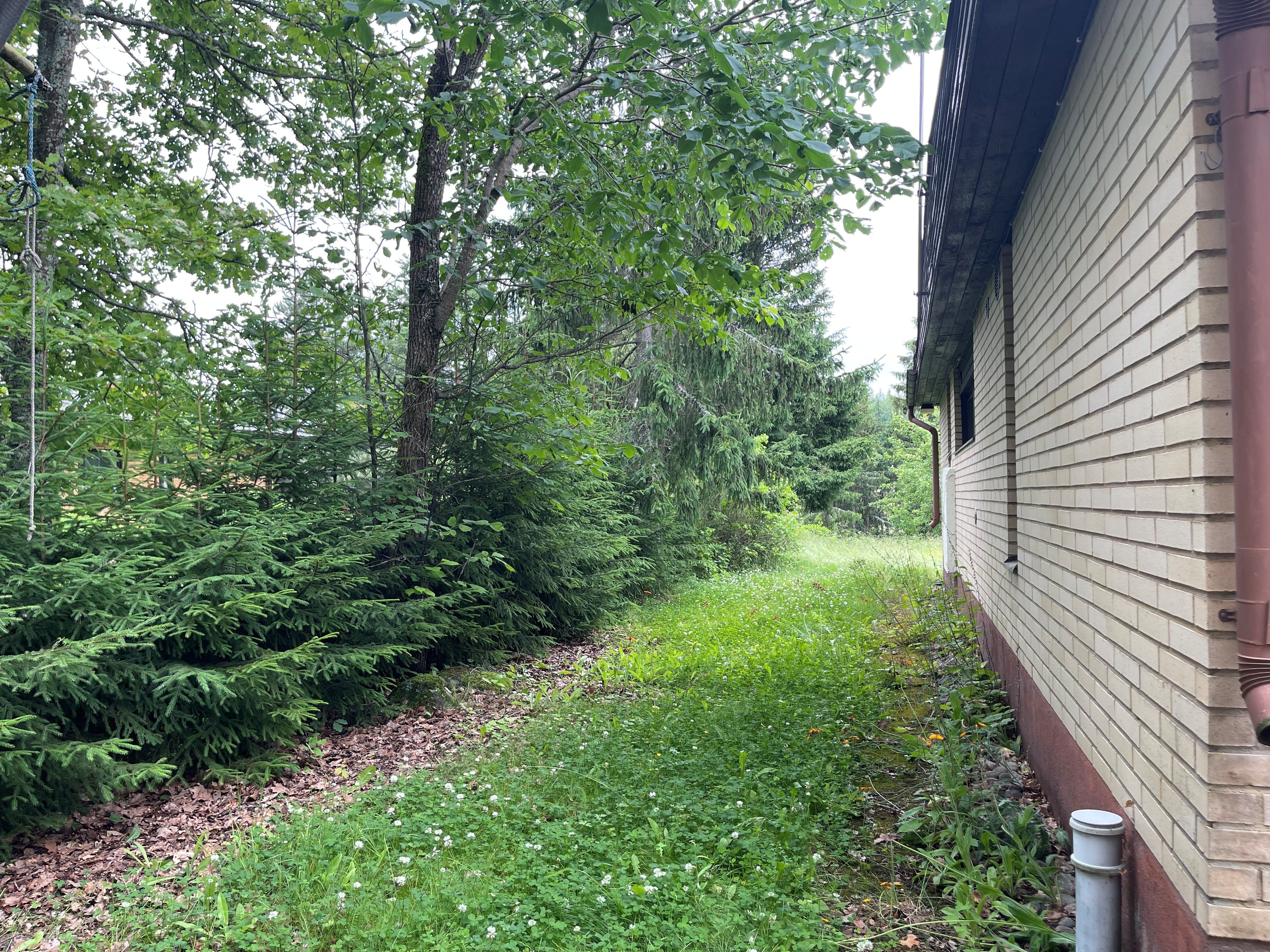 Talo sijaitsee omalla 2780m2 tontilla. Kyseessä on melko tasainen puutarhatontti. Pihalla vanhaa puustoa ja tilaa eikä liikenteen melu häiritse.