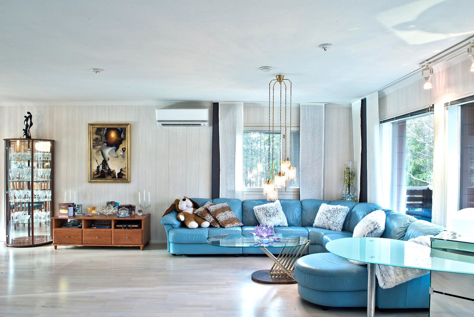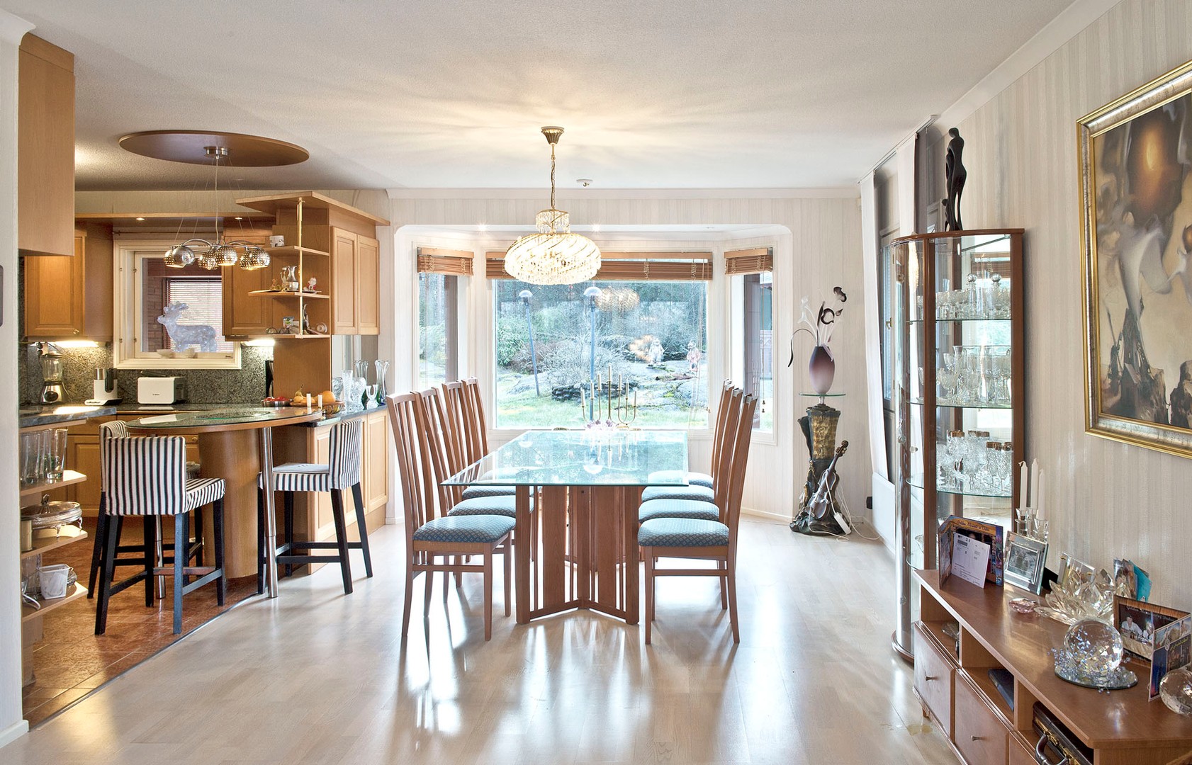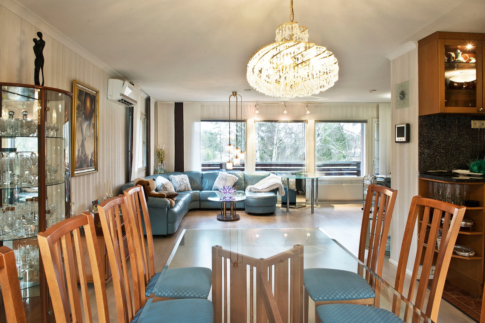 Iso ja avara olohuone jonka yhteydessä ruokahuone.