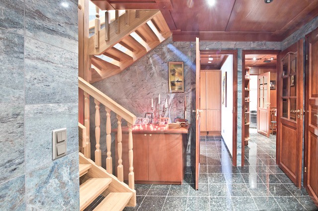 Talossa on noin 228m2 kahdessa eri tasossa. Makuuhuoneita on yläkerrassa kaksi kappaletta ja lisäksi alakerrassa on mahdollista myös pitää makuuhuonetta. Yläkerrassa on kaunis ja tilava keittiö ja keittiön yhteydessä ruokailutila sekä olohuone. Kylpyhuone ja wc löytyvät sekä ylä- että alakerrasta. Lisäksi alakerrassa on höyrysauna, kodinhoitotila, varastotilaa ja nykyisellään työhuoneena oleva huone. Alakerrasta löytyy myös kaunis takka. Pääsisäänkäynnin edessä on liukuovellinen puolilämmin tila ja parveketerassi kiertää talon takaosan puolella.