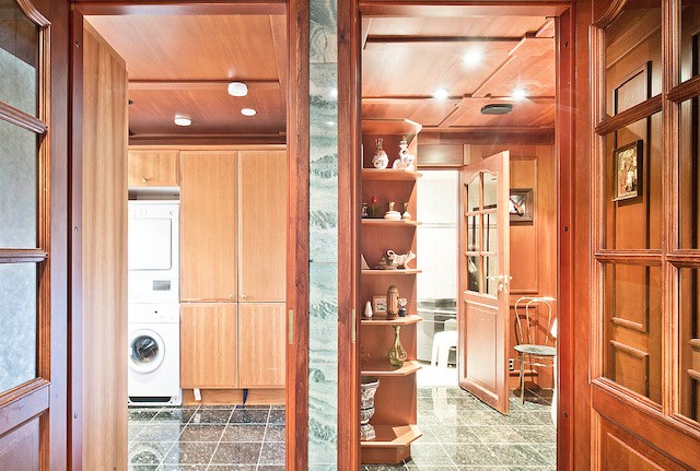 Lattialämmitys, pesukoneliitäntä ja pyykkikaapit