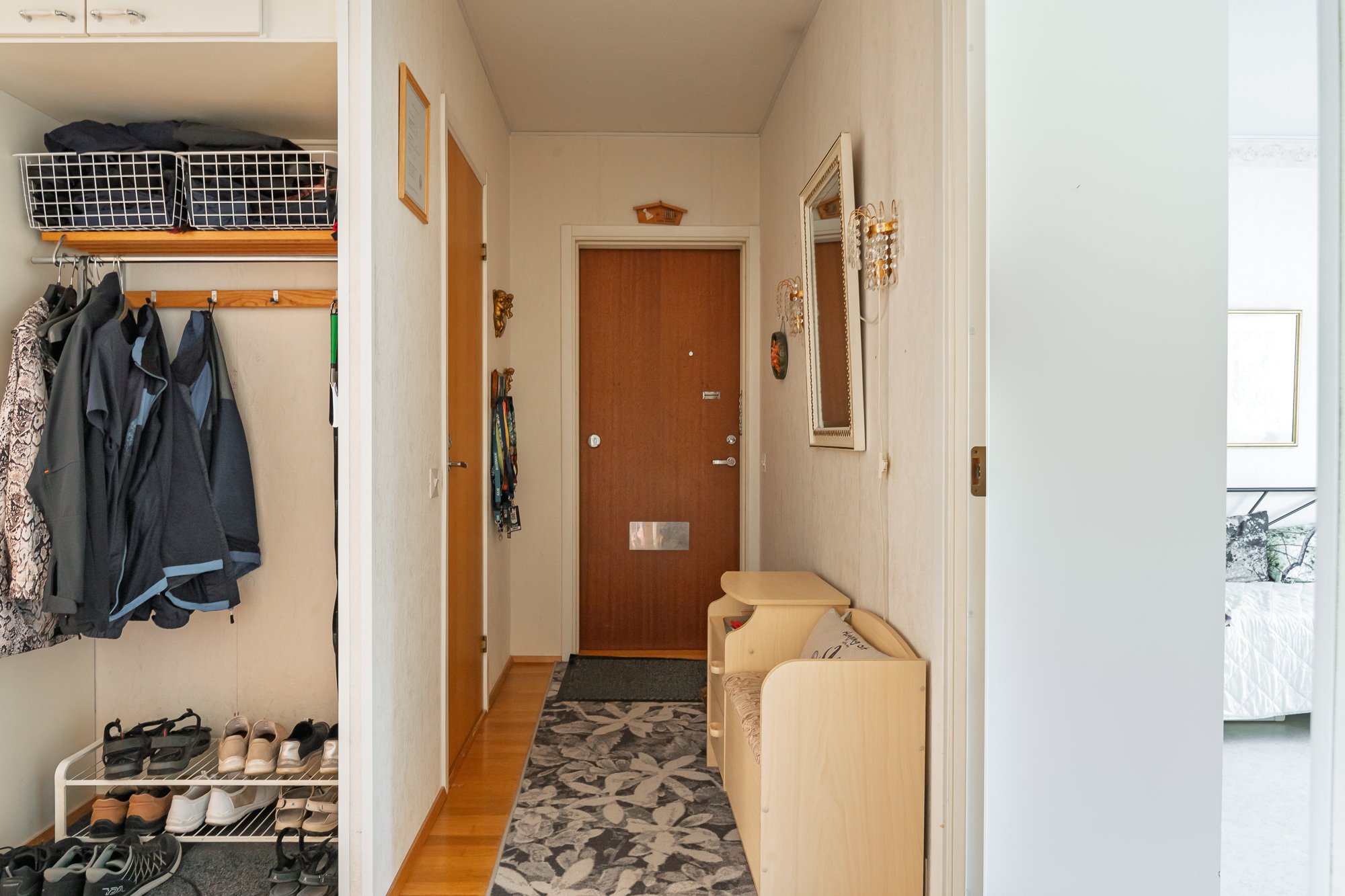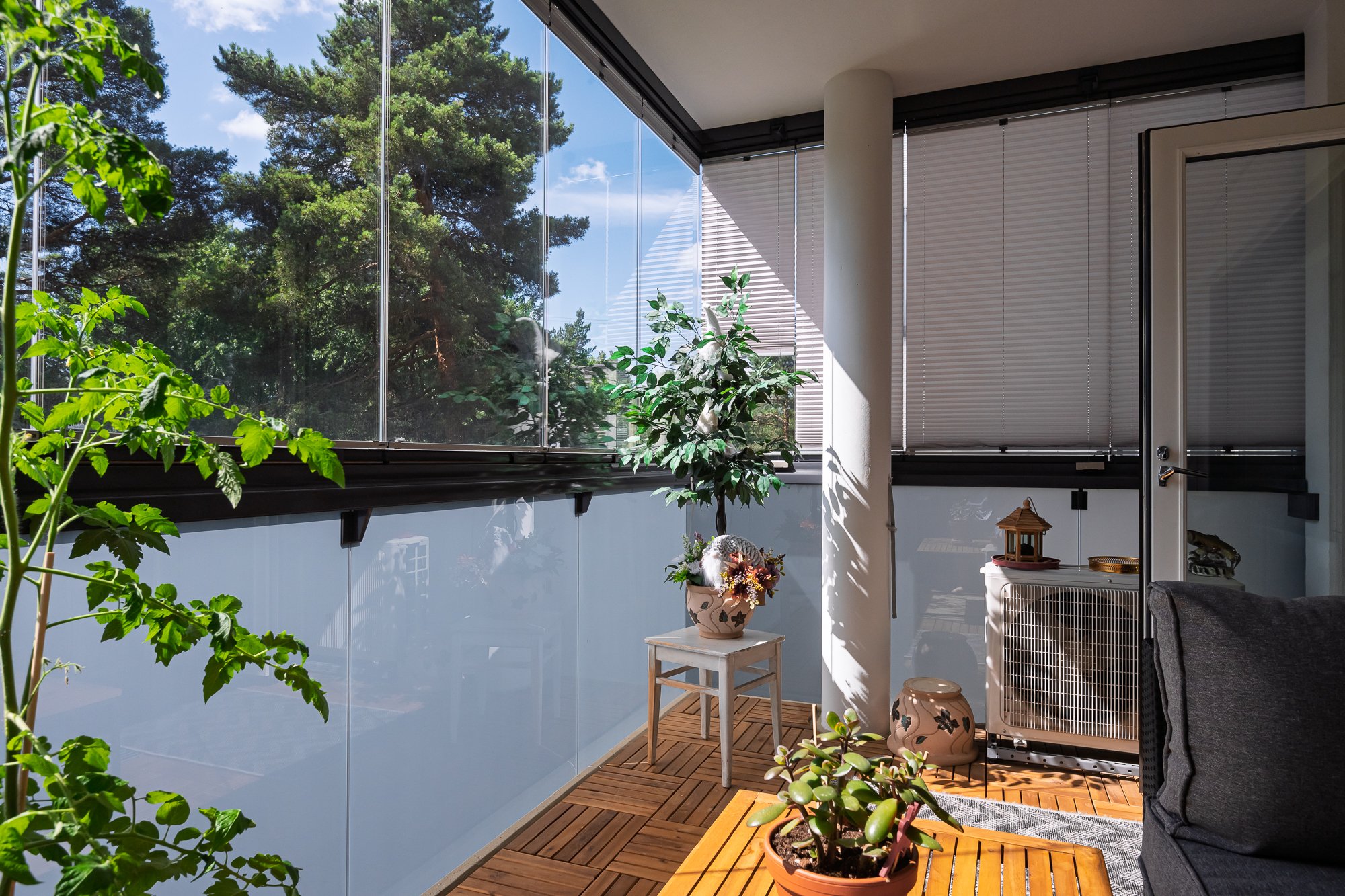 Tässä kahden makuuhuoneen kodissa jokainen neliö on hyvin suunniteltu. Makuuhuoneet ovat tilavia ja säilytystilaa on mukavasti makuuhuoneiden kiinteiden kaapistojen lisäksi erillisessä vaatehuoneessa. Olohuone on tilava ja käynti parvekkeelle yhdistää sisä- ja ulkotilat lämpiminä vuodenaikoina saumattomasti yhteen. Ilmalämpöpumppu varmistaa sopivan viileyden sisällä huoneistossa myös kesähelteillä. Vaaleansävyisessä keittiössä on runsaasti työskentely- ja kaappitilaa.