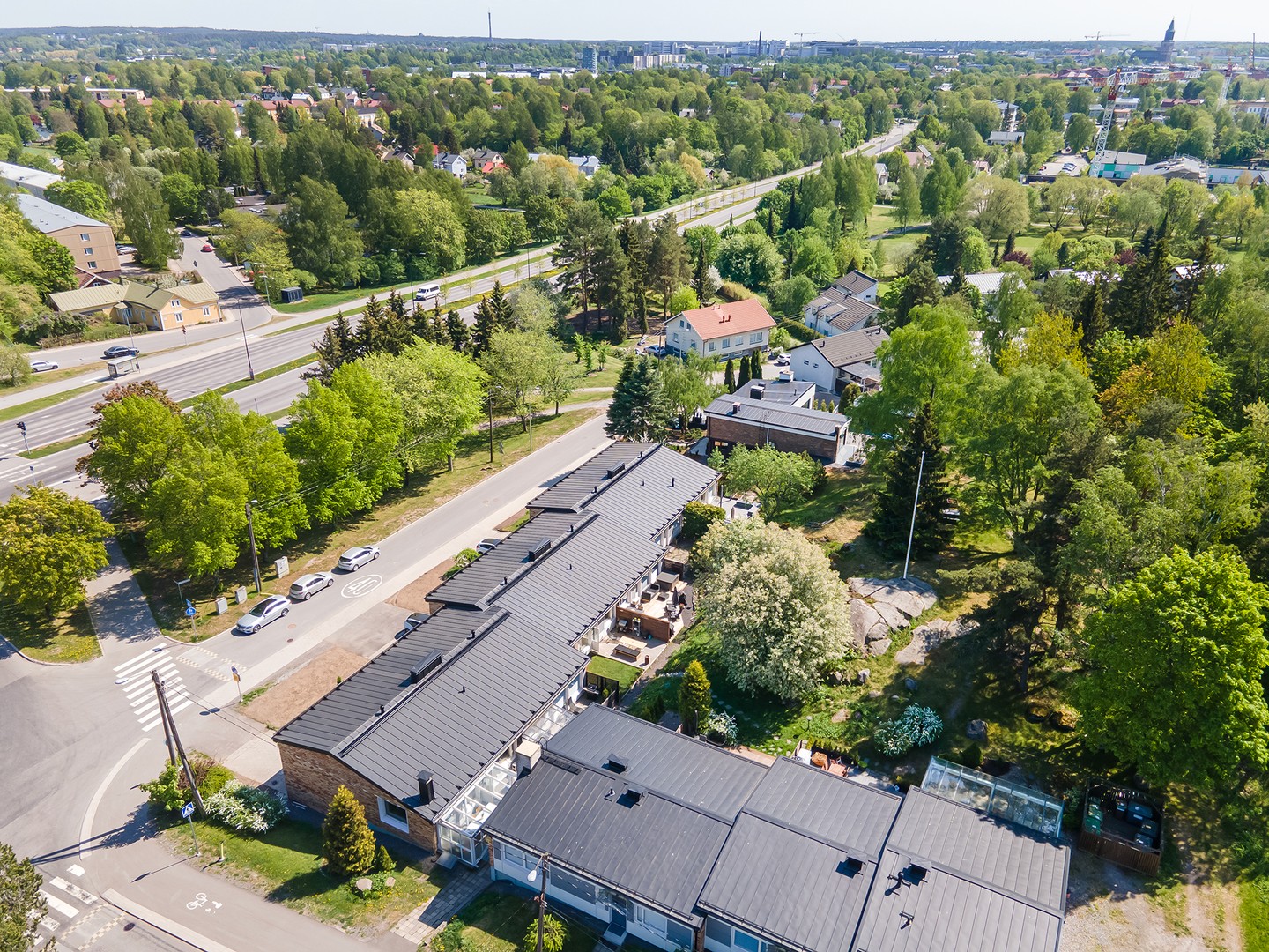 Bussipysäkki lähellä, sujuvat yhteydet omalla autolla ja hyvät pyöräilytiet