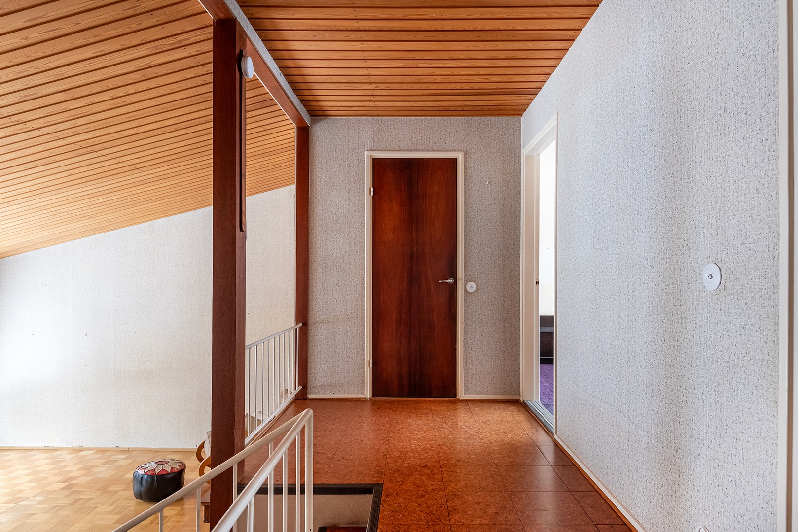 Olohuoneesta muutaman askelman päässä on huoneiston ylätasanne. Avonaiselta ylätasanteelta löytyy erillinen wc sekä tilava vaatehuone. Tasanteelta pääsee lisäksi asunnon kolmeen makuuhuoneeseen. Makuuhuoneet ovat tilavia ja ikkunat avautuvat Rieskalähteentien puolelle.