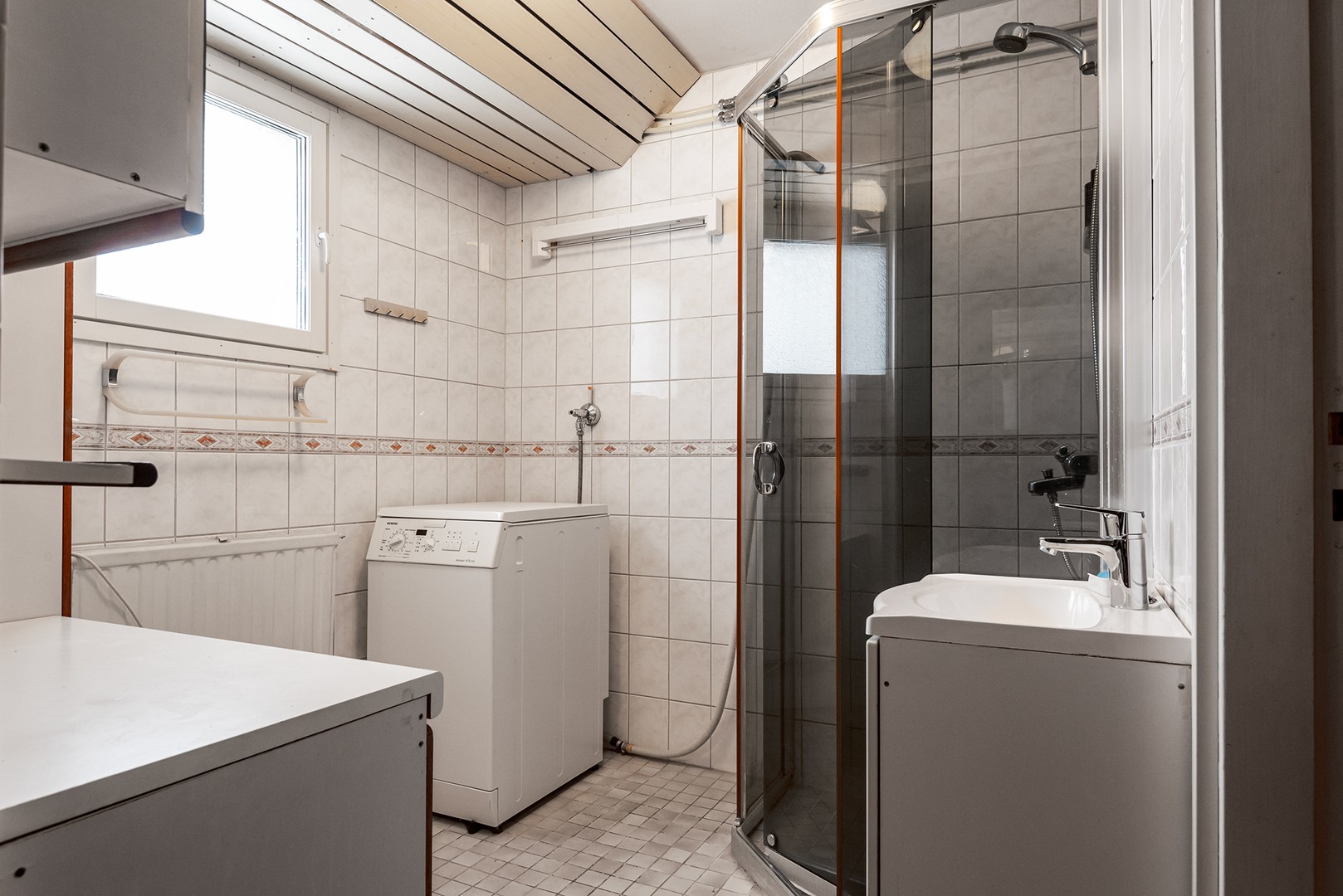 Suihku, pesukoneliitäntä ja pesuallas