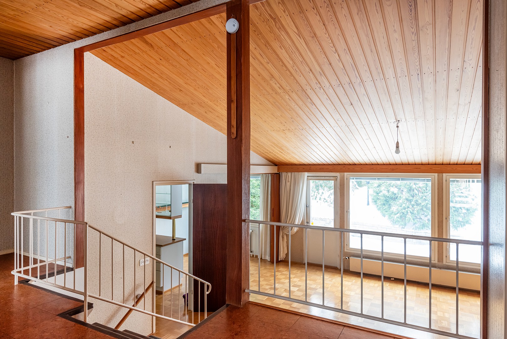 Yläkerrassa kolme makuuhuonetta.