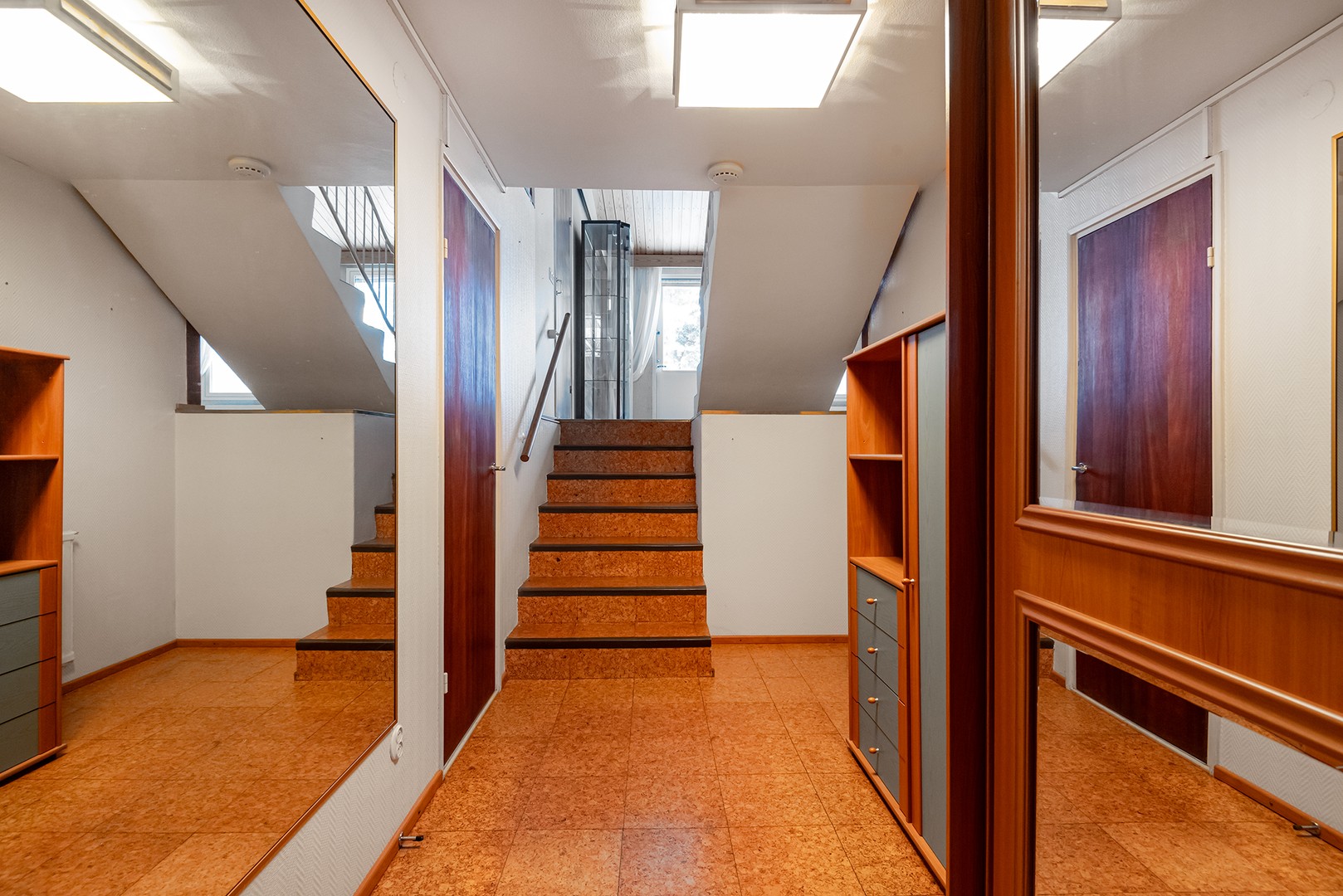 Yläkerrassa iso vaatehuone.