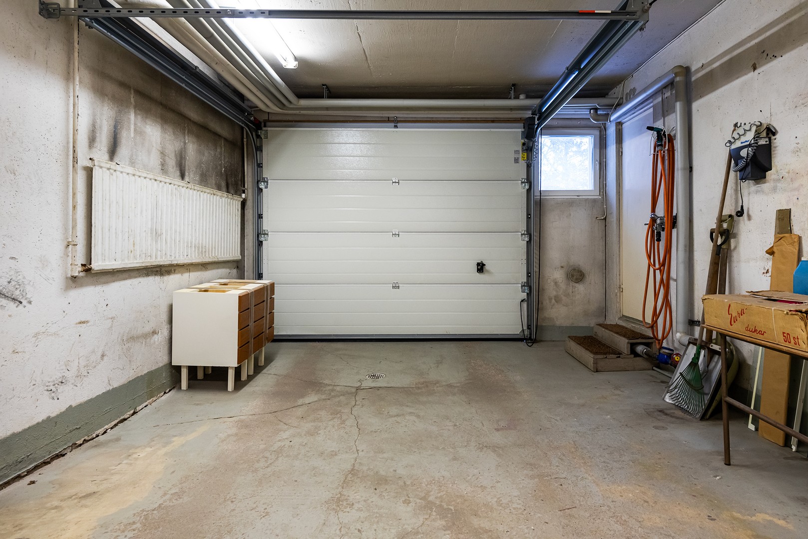 Oma autotalli ulko-oven vieressä, autotalliin kulku sisäkautta. Pihalle mahtuu myös toinen auto. Kadulla lisää autopaikkoja.