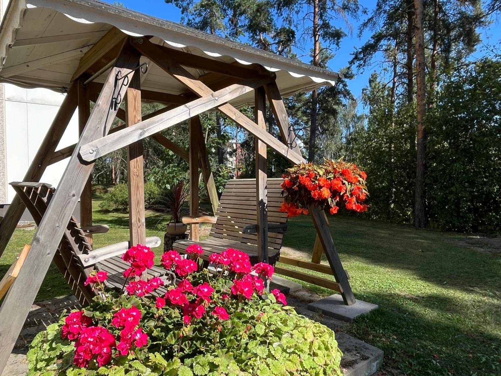Bussipysäkki lähellä, hyvät pyöräilytiet ja sujuvat yhteydet omalla autolla