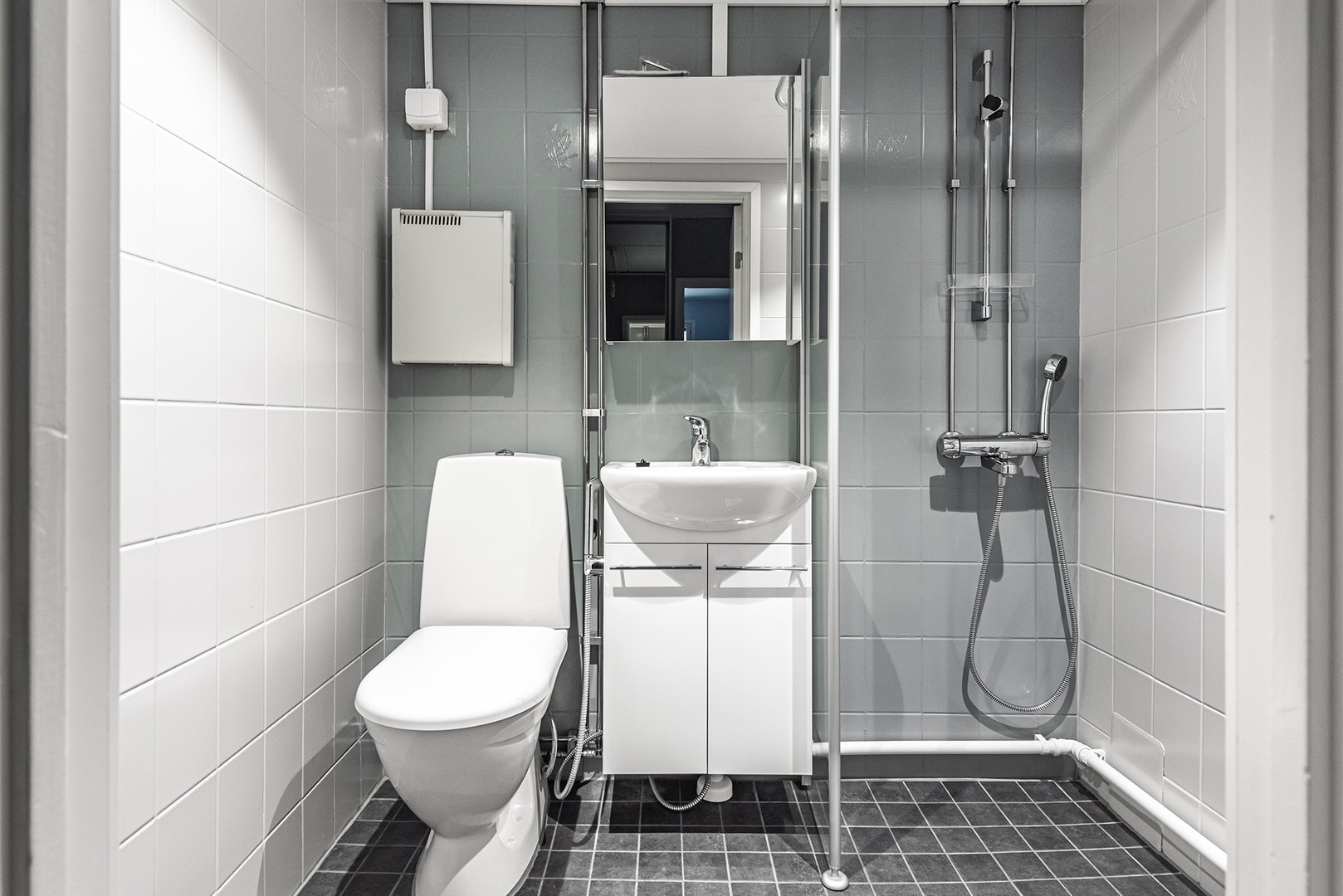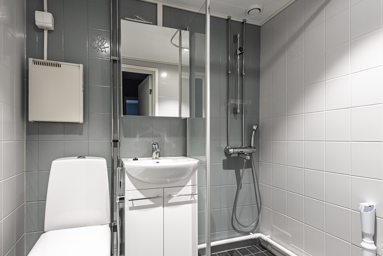 Kylpyhuone remontoitu vuonna 2024. Lattia ja kalusteet uusittu, seinät maalattu ja katto laskettu. Kylpyhuoneeseen mahtuu pyykinpesukone.