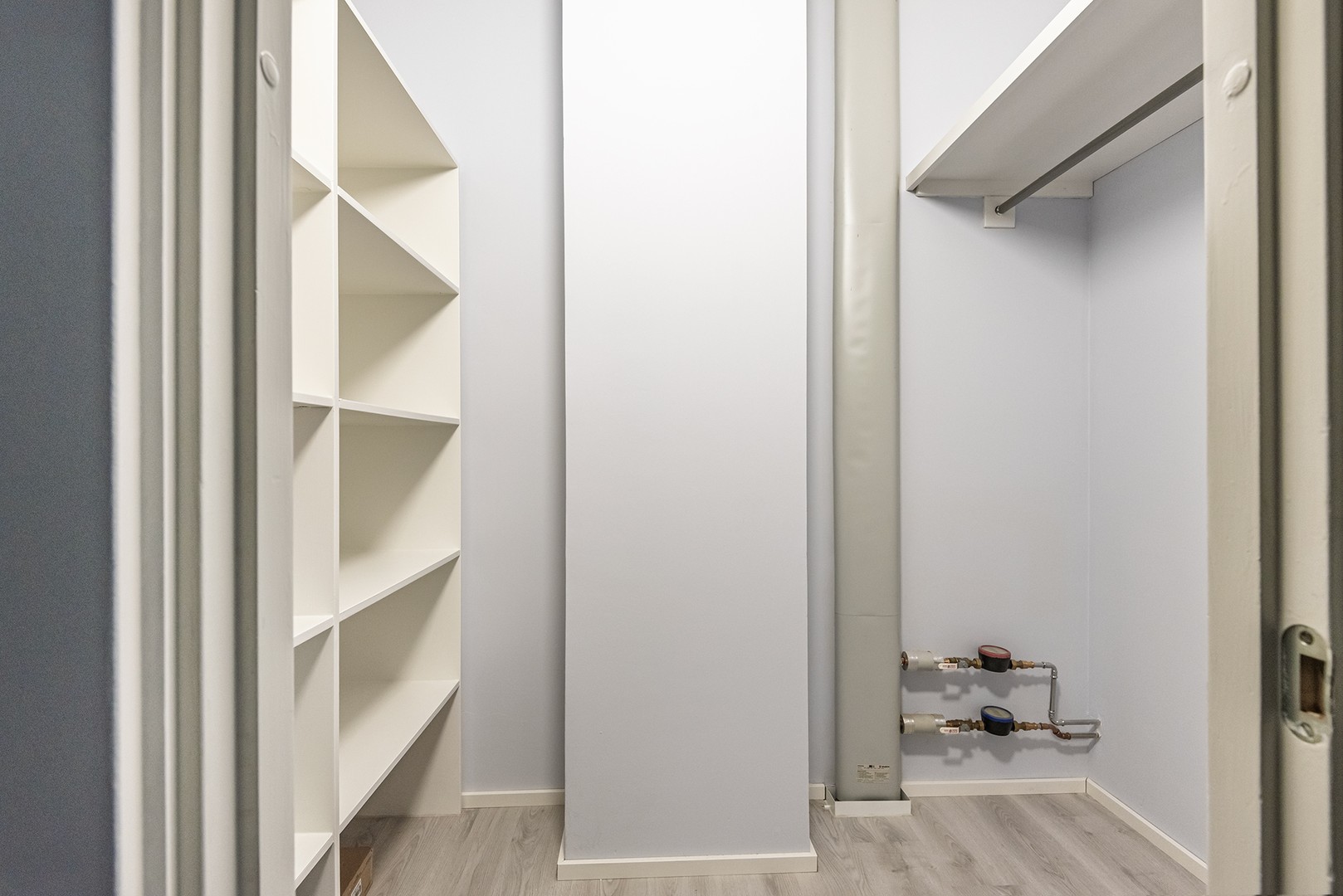 Valoisassa, juuri uusitussa keittiössä on runsaasti kaappitilaa ja huoneistossa on myös erillinen vaatehuone.