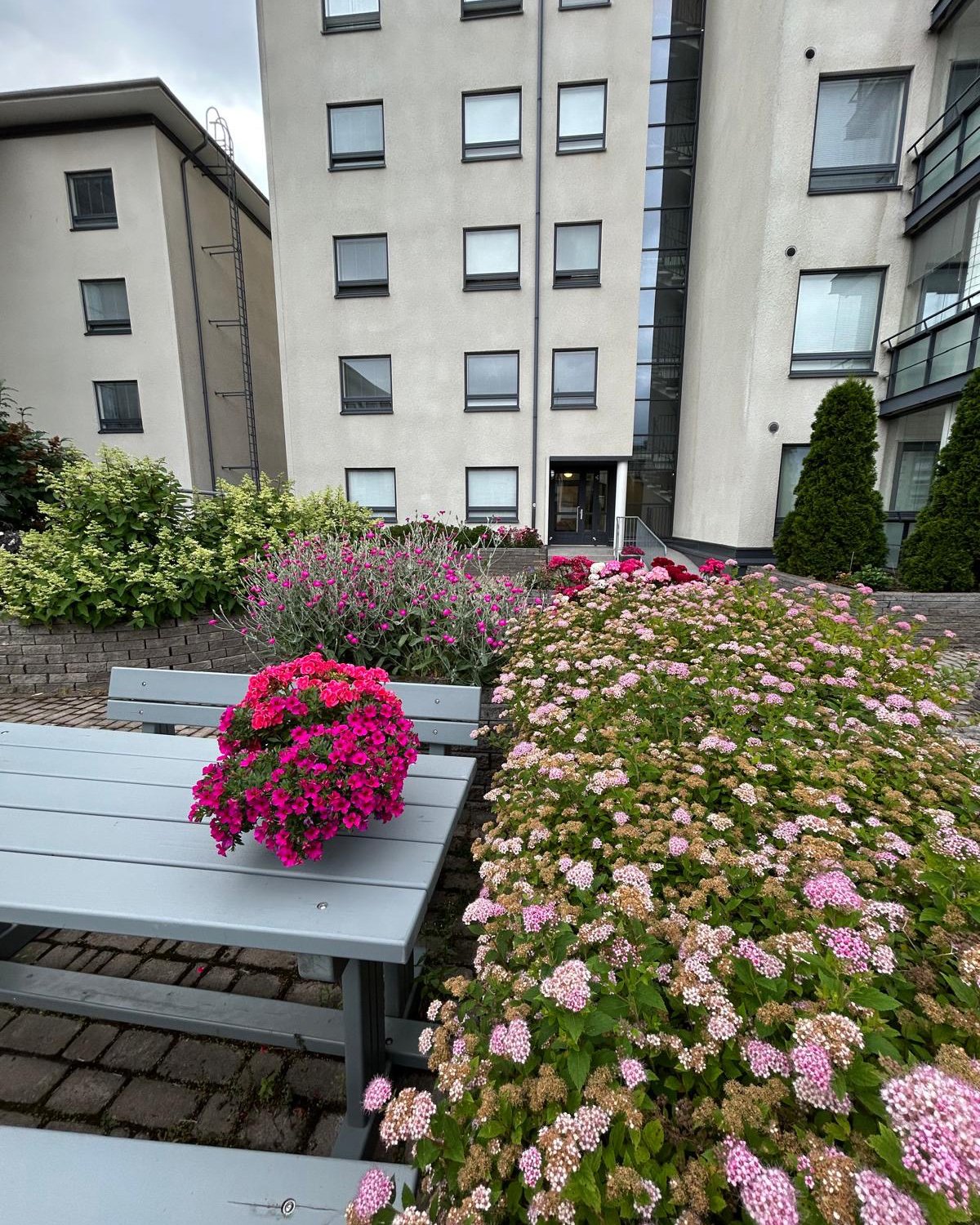 Bussipysäkki lähellä, sujuvat yhteydet omalla autolla ja hyvät pyöräilytiet