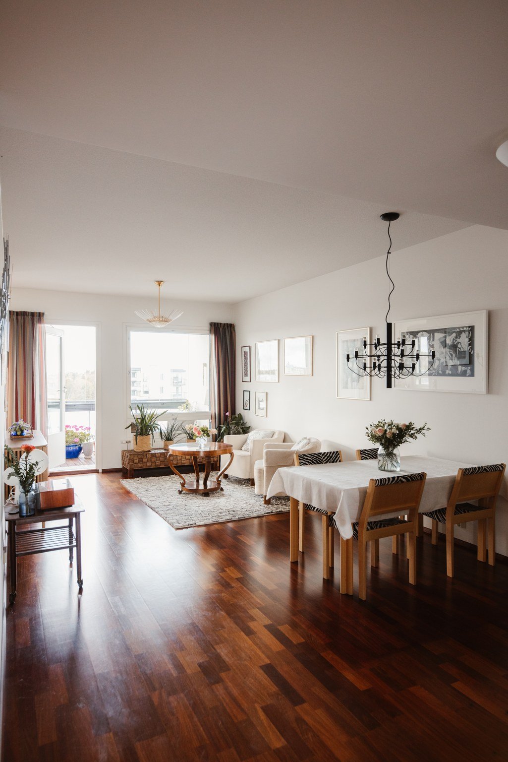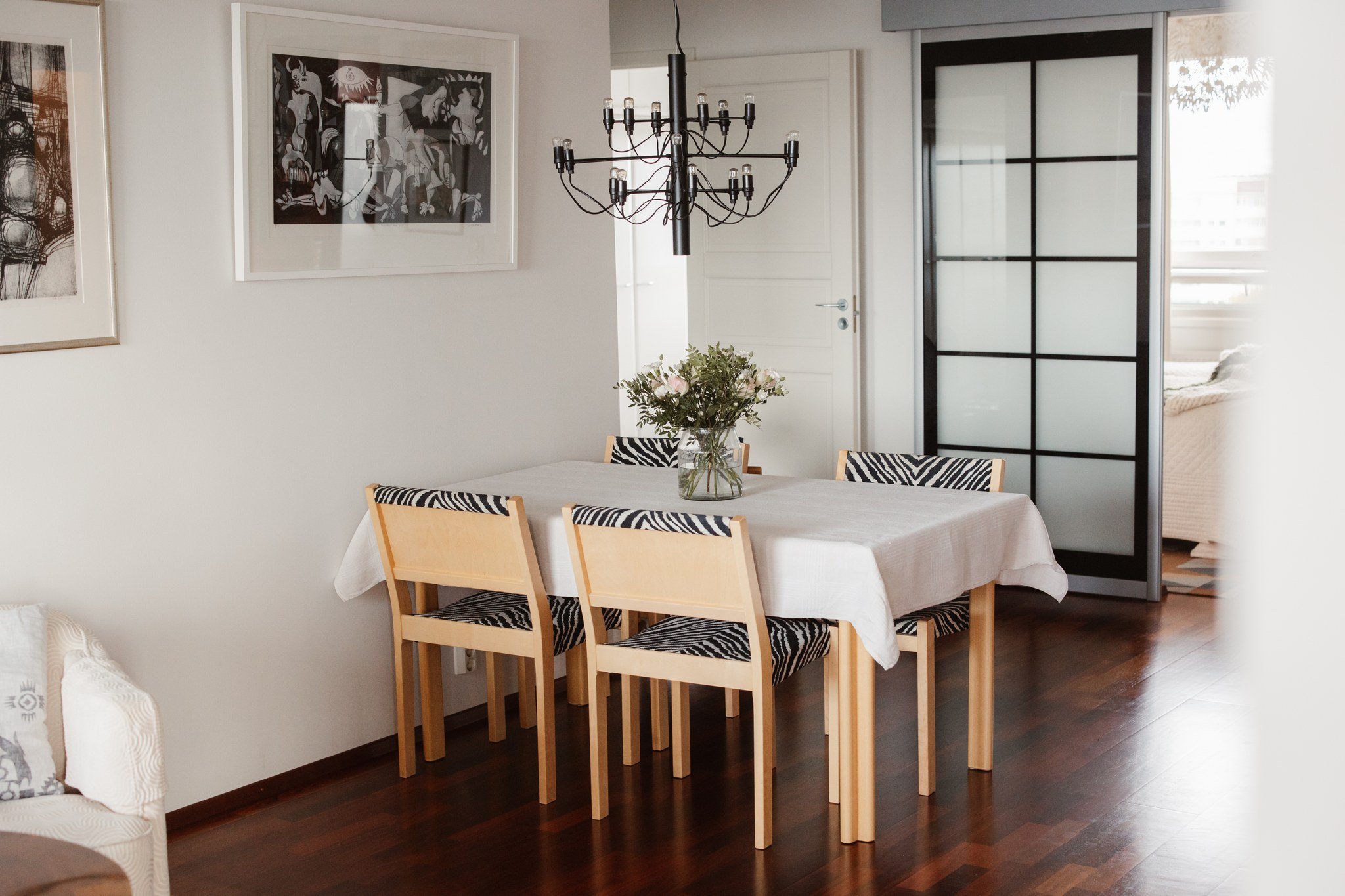 • Avaran olohuoneen yhteydessä on ruokailutila ja käynti suurelle lasitetulle parvekkeelle, jossa voi nauttia pitkälle syksyyn.