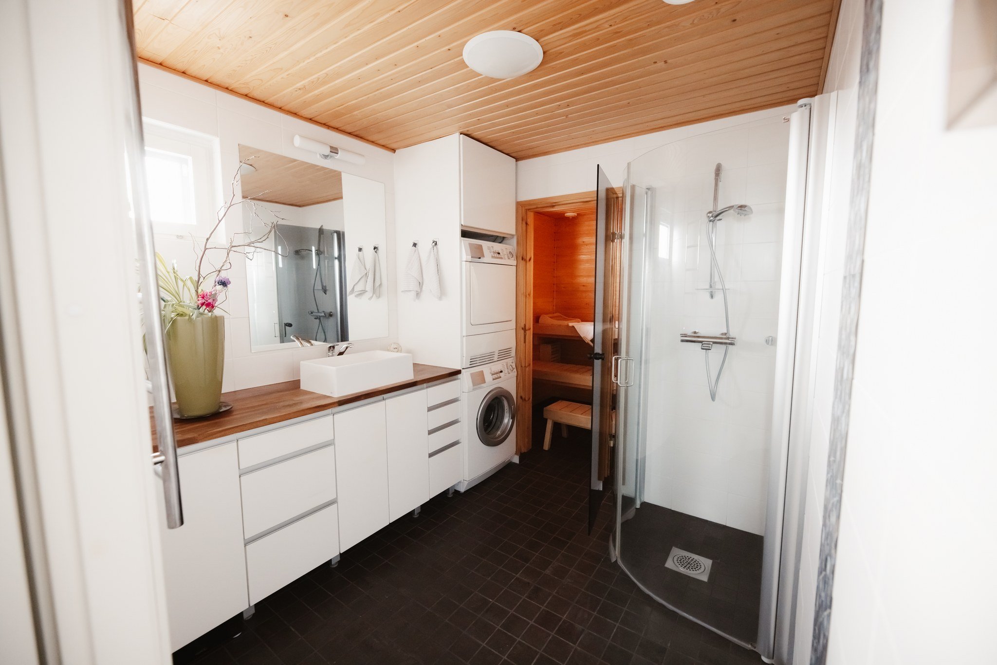 • Siisti kylpyhuone ja sauna sekä erillinen wc helpottavat arkea.