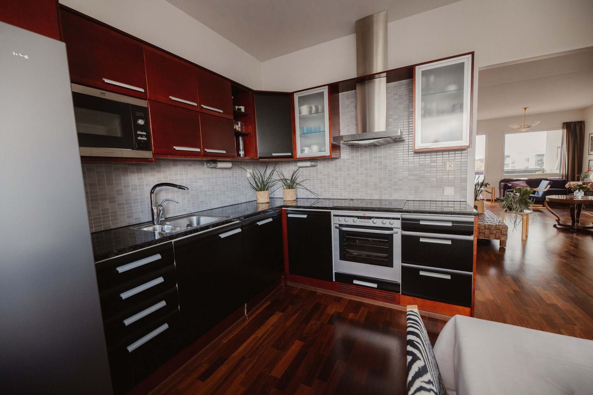 • Tilava keittiö, jossa on runsaasti kaappitilaa ja nykyaikaiset varusteet.